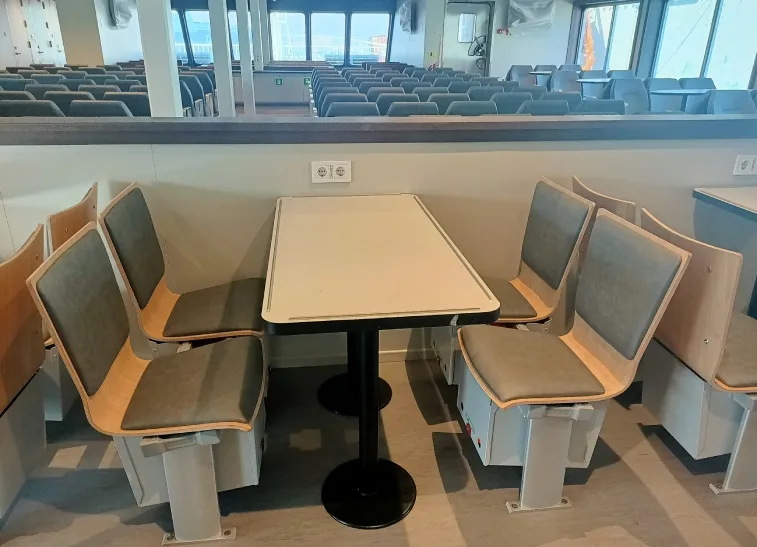 OMBO is a modern double-ended ferry operating in the Boknafjord region of Norway, providing a vital connection between islands. Equipped with advanced hybrid technology and prepared for future hydrogen-based propulsion systems, the vessel represents an innovative approach to sustainable maritime transportation. Within the scope of the project, CITA Marine Furniture delivered fixed furniture applications and custom solutions for both passenger areas and crew accommodation spaces.