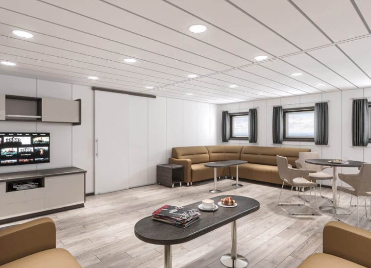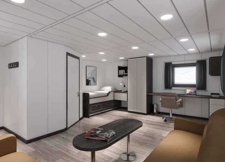 • Functional and ergonomic fixed furniture applications within crew accommodation areas